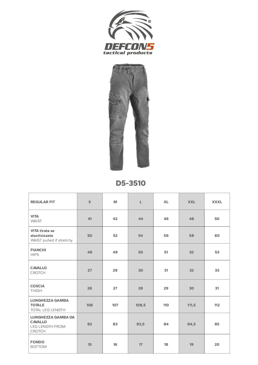 MIL-TEC MÉRETTÁBLÁZAT
