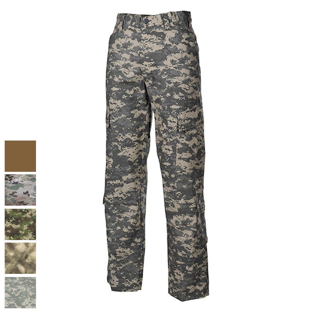 US ACU ARMY COMBAT UNIFORM nadrág szakadásgátlóval, gombos légy, húzózsinór a derékrészen a szélesség beállításához, 2 oldalzseb, 2 hátsó zseb füllel és gombokkal, 2 oldalsó füles zseb tépőzárral és zsinórral a nyílásnál zsinór dugóval , 2 oldal füles zsebek tépőzárral az alsó lábszáron , zseb a térdnél további védőkhöz (nem tartozék) Térd- és fenékerősítés Lábmandzsetta húzózsinórral a szélesség beállításához Anyaga: 100% pamut