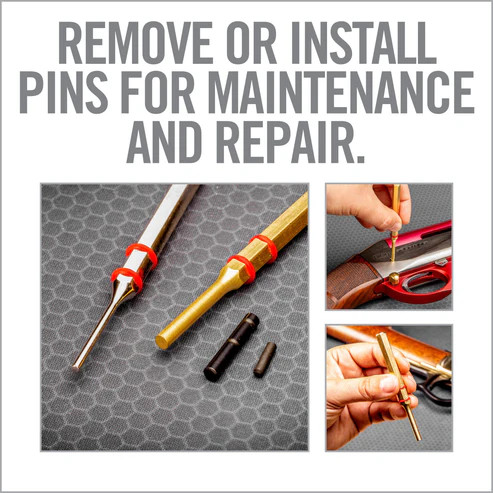 A lőfegyverek módosításához vagy szétszereléséhez szükséges alapvető eszközök. Az Accu-Punch 11 részes szabványos sárgaréz- és acélcsapos készletet az alapoktól kezdve úgy tervezték, hogy jobban működjön lőfegyverekkel. A kiütők sárgarézből és edzett acélból készülnek, nikkelezéssel, hogy ellenálljanak a korróziónak. A hatszögletű fogantyú és a gumi O-gyűrűk pontos irányítást biztosítanak használat közben.