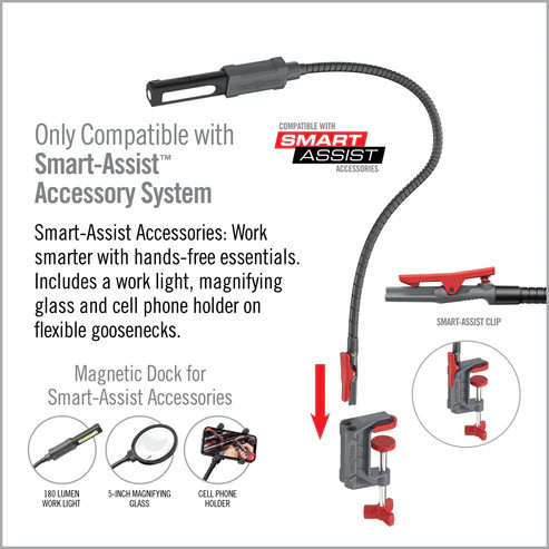 A Smart-Assist™ C-Mount, a tökéletes kihangosító-hatékonysági megoldás. Könnyen rögzítheti ezt a tartót bármely lapos élhez a biztonságos illeszkedés érdekében, lehetővé téve a gyors csatlakoztatást a Smart-Assist tartozékokkal. Szerszámmentes, megfordítható kialakítása sokoldalú pozícionálást és pontos testreszabást tesz lehetővé. A négy Smart-Assist rögzítőporttal több tartozék egyidejű használatát élvezheti a fokozott termelékenység érdekében. Bővítse munkaterületét a Smart-Assist C-Mount segítségével, és tapasztalja meg a zökkenőmentes, intelligens munkasegítést, ahol csak szüksége van rá.