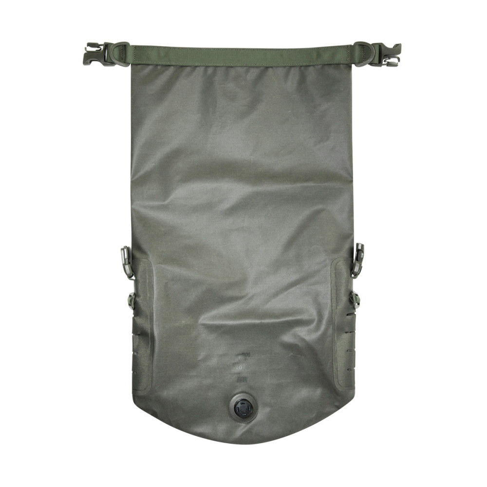 A hegesztett, lézervágott, résszel ellátott elemek lehetővé teszik a tekerőzár rögzítését és a csomagzsák rögzítését, pl. járműveken és hajókon. A felhasznált anyag PVC-mentes és PFC/PFAS-mentes DWR-felülettel rendelkezik. Térfogat: 15 liter.
